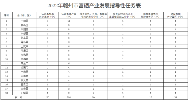 2022年贛州市富硒產業發展指導性任務表