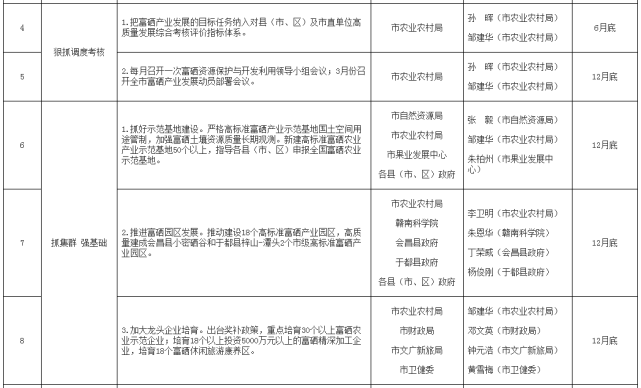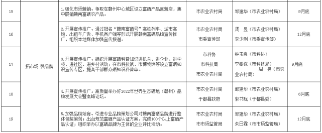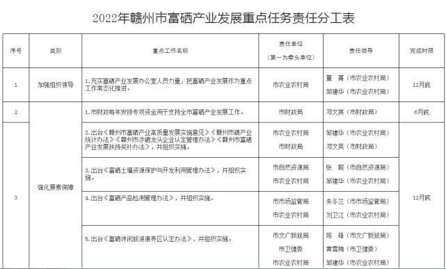 2022年贛州市富硒產業發展重點任務責任分工表