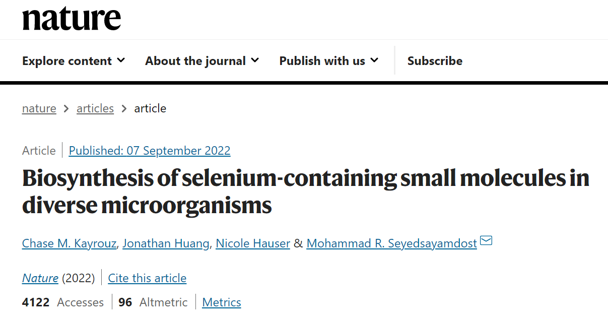 1. Chase M. Kayrouz et al. Biosynthesis of selenium-containing small molecules in perse microorganisms. Nature, 2022, doi:10.1038/s41586-022-05174-2.